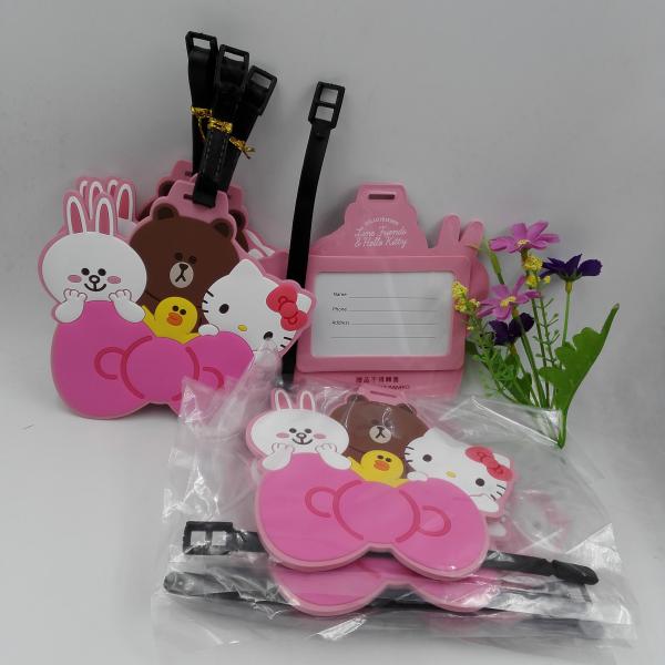Pink Hello Kitty Friends Rubber PVC Luggage Tags Suitcase Luggage Tags With Black Plastic Rope, Accept OEM 2D Or 3D Images |